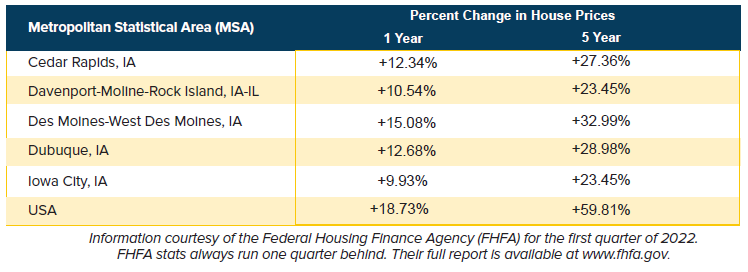 The first quarter of 2022 saw double-digit price appreciation for a number of markets across the United States, including many of our own markets! The rest of 2022 is expected to see continued home price growth which is good news for sellers who are looking to list their homes later in the year. The pace of this increase will be more moderate compared to 2021 but is predicted to still continue on an upward trend.