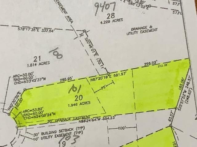 Lot 20 of Timp's Subdivision (Phase 2).Marie Court is off Louieville Court (off 5th Street) just east of downtown Galena. The lot slopes downhill. Electric, water, and sewer service are available for the lot but not currently connected. Buyer will need to confirm with Nicor whether natural gas is available at the lot. Covenants & Restrictions apply. (Note: Irregularly shaped lot. Left side measurements are the combination of multiple sides. Acreage from county records.) DIRECTIONS for Timp's Subdivision Phase 2: From Galena, head north on Park Avenue for 0.3 miles then turn right on Jackson. Follow Jackson for 0.1 miles and turn left on 5th Street. Follow 5th Street for 0.1 miles then turn right on Louieville Court. From east of Galena, head north on Powderhouse Hill Road for 0.7 miles then curve left onto 5th Street. Turn left onto Louieville Court after 0.1 miles.