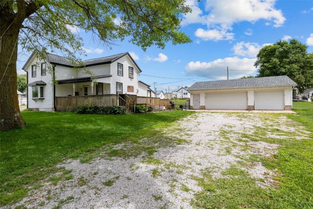 This property has over ½ acre and boasts of a newer 4-car (1008 sq ft) detached garage, a 3-bedroom 1.75 story home with a large deck. Located in peaceful Watkins, just 20 minutes from Cedar Rapids, in Benton Comm School District with bus service. Most of the hard work is already done, just bring your vision to finish it. In 2022 new siding, soffits, fascia, gutters were added to the house and garage. There is a fenced yard, pet fence and garden area. Kitchen, first floor laundry and bath were being remolded when sellers decided to sell. Refrigerator, washer / dryer new in 2022, induction cooktop new in 2023. There is several items that will be included with the house; Kitchen cabinets that are all quarter-sewn oak with soft close and hinges, including 2-pull out spice cabinets, toe kicks, a tall unit for the wall oven and microwave, 3 x 5 shower, including base pan, surround, glass doors, a jet tub, several building supplies; plywood, insulation, dry wall etc. This property is sold 'as is.