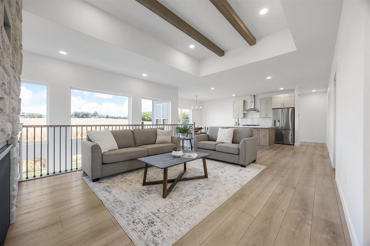 Welcome home to this spacious ranch in the highly desired Stonebrook development in beautiful Mt Vernon! Located within walking distance to Mt Vernon schools, sports complex, and community wellness center! Stunning exterior with stone accents. Spacious great room with trey ceiling, LVP floors, floor to ceiling stone fireplace, & built-ins. Main level laundry/mudroom with lockers. Gorgeous kitchen with off white cabinets, quartz countertops and backsplash, hood vent, gas stove, phone charging feature in the countertop, huge walk-in pantry, & daily dining area. Primary suite with walk-in closet, transom window, his & her vanities, groutless solid quartz primary shower, & a linen closet. Two spacious secondary bedrooms & another full bathroom with dual vanity completes the main level. Atrium staircase to the lower level, where you'll find a large rec room with wet bar, game/bonus area, 4th & 5th bedrooms & a 3rd full bathroom. As a bonus, the lower level also features a cold storage area/storm shelter under the front stoop! Oversized concrete patio with views of a field! No neighbors behind you!