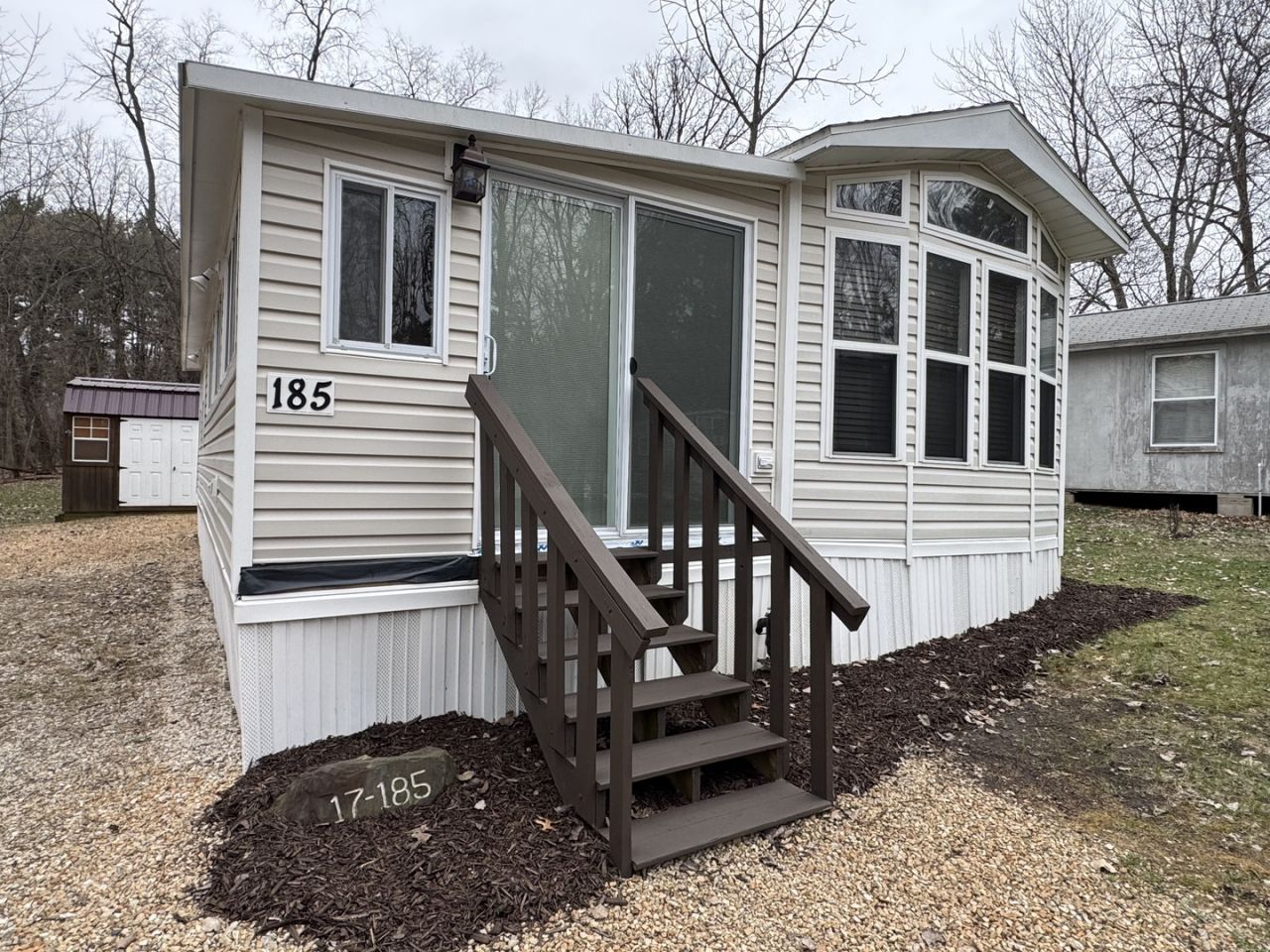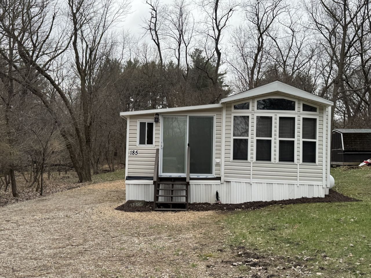 Welcome to this beautiful lot featuring a turn key 2003 Quailridge Park Model-updated, fully furnished, and ready for you to start enjoying the Woodhaven lifestyle. Recent improvements include a new roof (2023), HVAC (2024), newer appliances, custom blinds, updated lighting, and refreshed interior flooring. Everything is set for an effortless glamping experience. Step inside the charming room addition, complete with a lovely old Wisconsin bar and a private bedroom-a perfect blend of character and comfort with plenty of space for entertaining. Outside, the lot offers two sheds for all your camping essentials, a cozy firepit for unforgettable nights of s'mores and stories, and ample parking for guests. The property backs up to common ground on the side and rear, giving you extra space and added privacy. You're also conveniently close to a comfort station and just minutes from all the amenities Woodhaven Lakes is known for. Woodhaven Lakes is a gated recreational community offering access to 7 lakes, fishing, pools, a beach, playgrounds, hiking trails, cross country skiing, and snowmobiling. On site conveniences include a general store, hardware store, and gas station. Property owners are responsible for yearly assessments. This is not a homestead property.