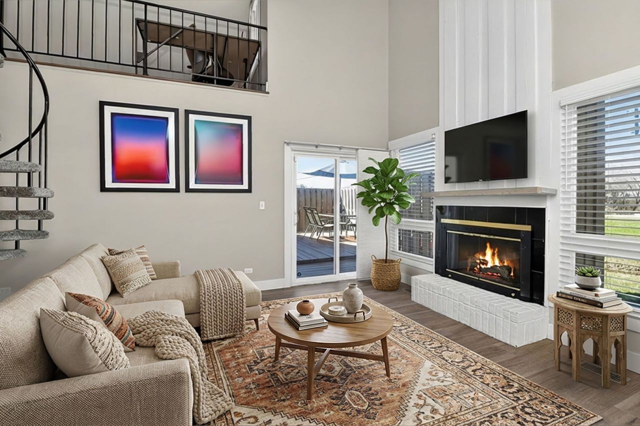 Beautifully remodeled end-unit courthome in Sawmill Creek offering style, comfort, and functionality throughout. This 3 bedroom plus loft, 2 bath home features a highly desirable first floor primary suite with a fully customized oversized walk-in closet, separate sink area with brand new vanity, new toilet, tiled shower, and tiled flooring. The home is filled with tons of natural light and features luxury vinyl flooring throughout, fresh paint, oversized white trim, updated interior doors, and new lighting. The remodeled kitchen includes granite countertops, custom tile backsplash, brand new cabinetry, can lighting, and stainless Samsung appliances, and opens to a spacious elevated dining area perfect for everyday living and entertaining. The dramatic living room showcases vaulted ceilings, a floor-to-ceiling gas fireplace, wood beam detail, and access to a private extra large deck off the back, ideal for relaxing or entertaining. Upstairs, the loft and additional bedroom offer flexible space for guests, work, or a second living area. Additional improvements include newer windows, HVAC, water heater, screen door, washer and dryer, brick and cedar siding, and roof updates. Conveniently located near shopping, dining, walking trails, and expressways, and served by top rated schools including Downers Grove South High School.