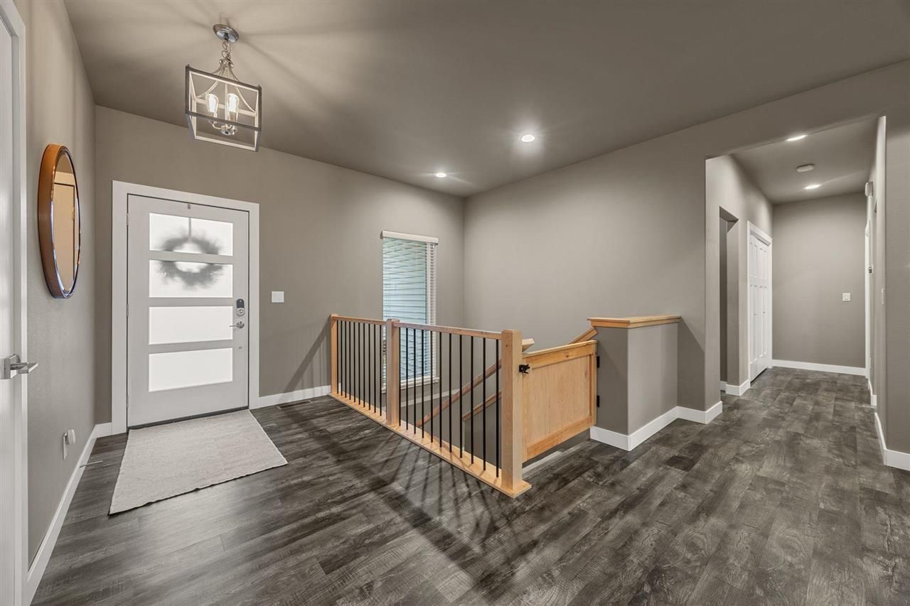 Custom contemporary design with modern finishes, high ceilings, and a split bedroom layout in the established Aspen Ridge neighborhood. Built for the homeowner who wants more home and lower utility bills. Enjoy enhanced spray foam insulation coupled with solar panels and Enphase battery backup. Battery back up runs water heater, certain lights and wifi in the event of outage. Over 1,800 finished square feet on the main level. Dramatic entryways, spacious hallways and tall ceilings. Laundry connected to the primary closet with a dog washing station right off of the garage. A kitchen island that opens to a dedicated dining nook. A sunroom with fireplace that opens up to a fully fenced in rear yard. Three oversized storage areas. A deep third-stall garage insulated to R49. Four bedrooms, a non-conforming 5th, and space to finish a 6th. The neighborhood already has everything. Now so does the house.