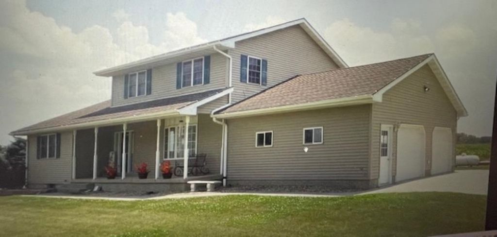 Just 2 miles southeast of Manchester and close to Pin Oak Golf Course, this well-maintained acreage offers both comfort and functionality. The 2-story home features 5 bedrooms and 21/2 baths, including a main-floor primary suite with a jacuzzi tub. Add convenience with main floor laundry, a large kitchen with center island and abundant cabinetry, and a private office that could serve as a 6th bedroom. The lower level provides plenty of space for entertaining, workouts, or storage, along with a non-conforming bedroom. A heated 2-stall attached garage includes stair access to the basement. Outside, you'll find a 40x60 insulated outbuilding with two 13' automatic overhead doors, loft storage, and a half bath with utility sink and water heater-ideal for hobbies, vehicles, or a workshop. Surrounded by open fields, this property combines peaceful rural living with easy access to town amenities.