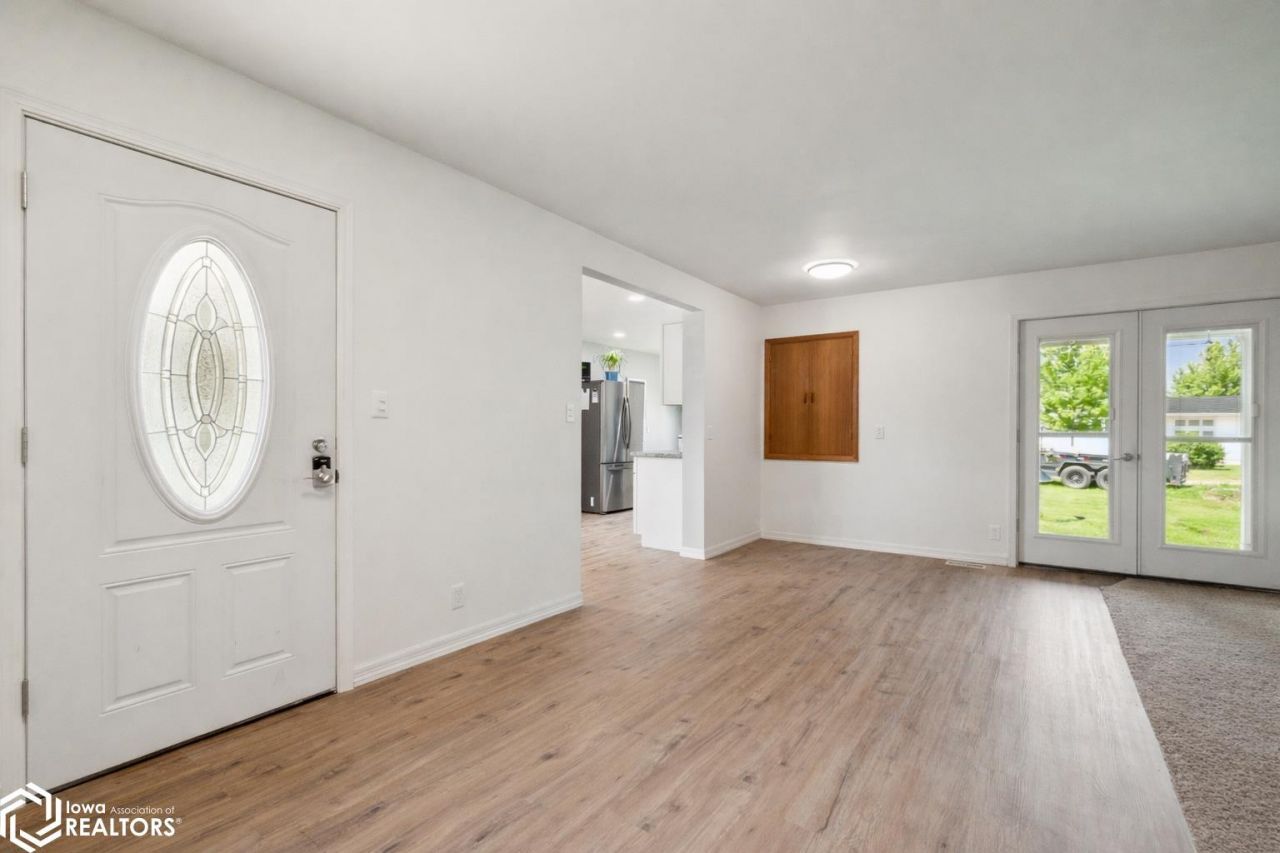 Fantastic, renovated ranch home in established neighborhood in Montezuma, Iowa. This home has seen a ton of updates from 2022 to 2025 - it's definitely a must see. The gorgeous exterior includes newer siding and windows with a great, level yard as a bonus. Once inside you'll notice the huge, open living room with newer flooring and trim throughout. A set of French doors leads out to the covered patio in the rear. Back inside the kitchen you'll notice newer cabinets, countertops, flooring and newer stainless steel appliances! Down the hall is a completely updated full bathroom before getting to the three main floor bedrooms each with a double closet. The center hallway offers two closets for additional storage. The lower level is dry, open and ready for your personal touches. Other amenities are a level backyard with alley access to the garage, newer furnace and AC (with ductwork), new hot water heater, and so much more. Call today to schedule a private tour of this incredible home.