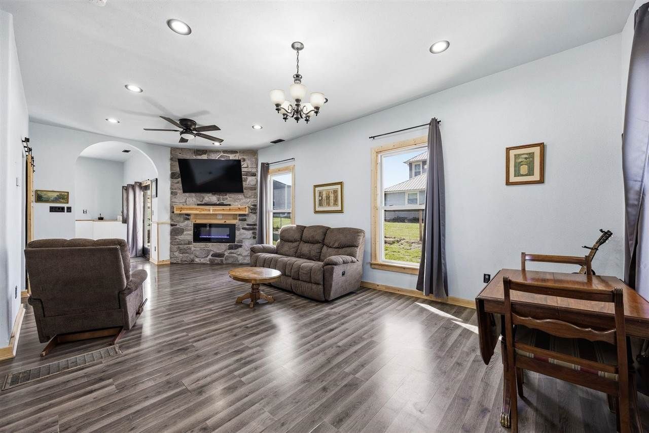 Welcome home to this charming, freshly renovated property! From the moment you walk in, you'll love the bright, open living space with tall ceilings. The open living room features a stunning floor to ceiling stone electric fireplace, perfect for cozy nights in. The home offers durable LVP flooring throughout, with carpet in the bedrooms for added comfort. The updated kitchen comes complete with newer appliances, making this home truly move-in ready. Step outside to enjoy the patio space and fenced yard, complete with raised garden and flower beds and a small greenhouse, ideal for gardening or extra storage! Schedule your showing today!