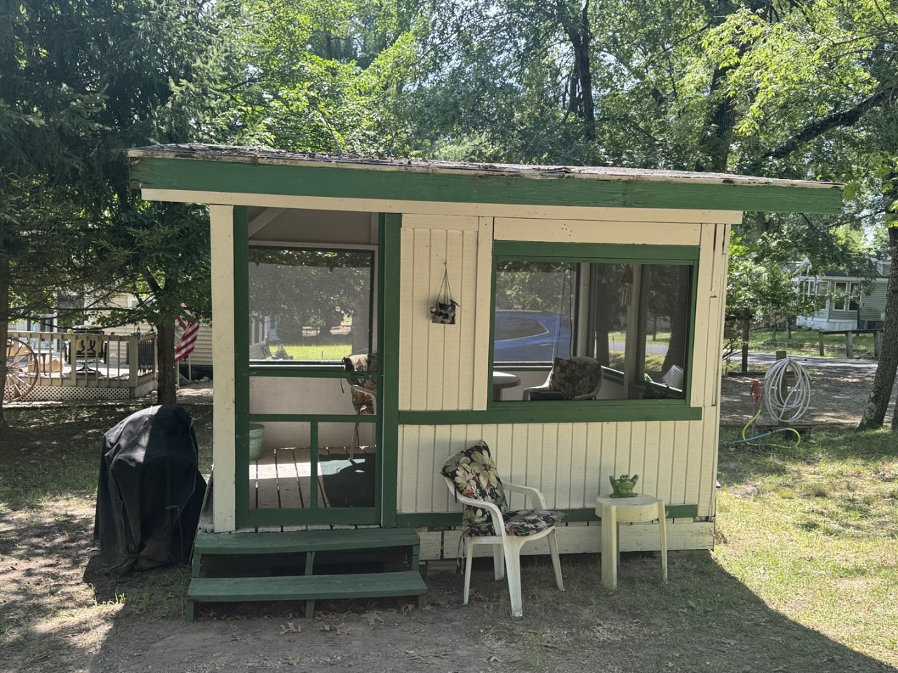 Very nice lot with common area to the rear and a short walk to the beach and the pool. All ready to park your camper on. A screen room to cool off and relax. Also included are a shed, old mower, grill, picnic table, chairs and firepit. This one wont last long! Please note that Woodhaven Lakes is a gated recreational community and cannot be used as a primary residence or homestead. You must be accompanied by a broker to view any properties, YOU CANNOT ACCESS THE CAMPGROUND WITHOUT A PASS. The property owner pays the association fees.