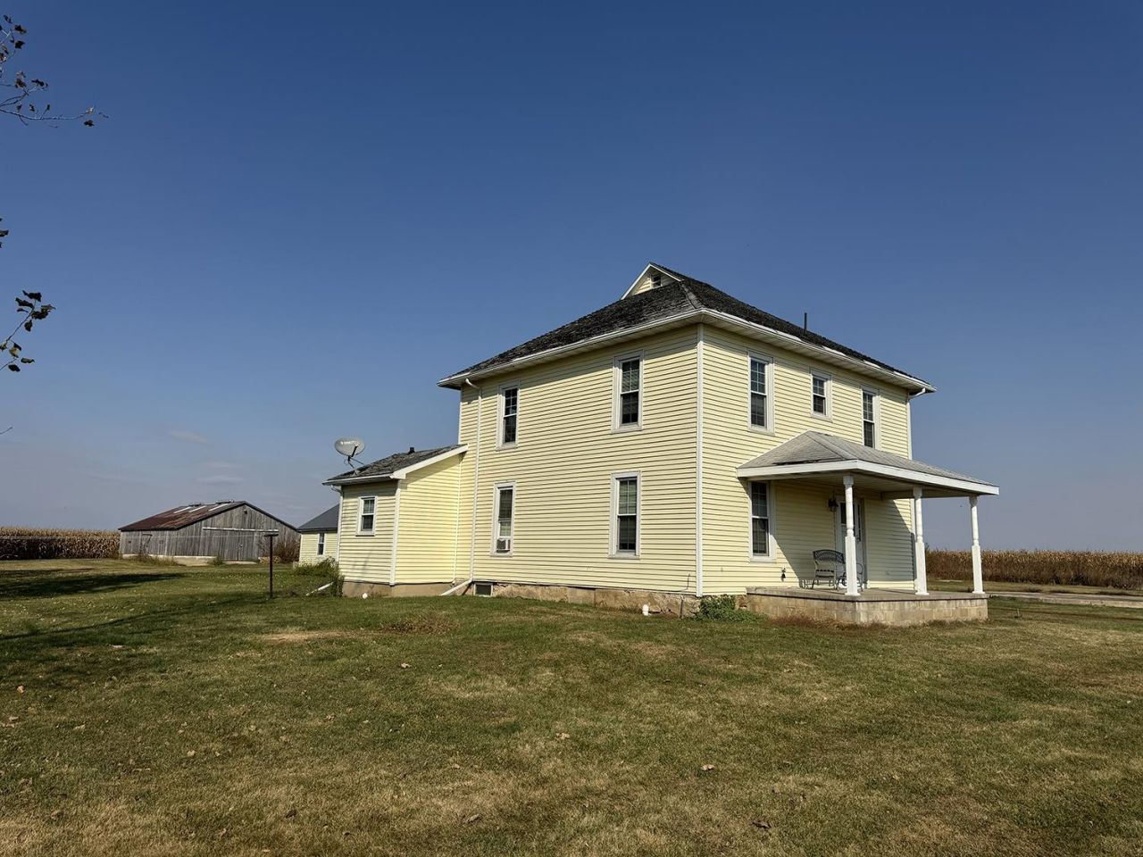 Set on 2.93 acres, this spacious two-story home offers flexible living and work-from-home possibilities. The main floor features a bedroom, a full bath, a nearly complete 1/2 bath just needing the sink connected, a galley kitchen with adjoining eat-in area, formal dining room, living room, and convenient laundry. Upstairs, you'll find three additional bedrooms and a full bath with a shower stall and corner jetted tub. Enjoy the outdoors from the covered front porch or side wood deck. A 3-stall attached garage provides ample parking, while the 24'x30' space with its own entrance offers potential for a home office, studio, or hobby area. A 24'x40' outbuilding adds even more storage or workshop options. Seller reports updates to plumbing, electrical, and septic systems in 2007. Whether you're looking for space to spread out, pursue hobbies, or work from home, this property truly has it all.
