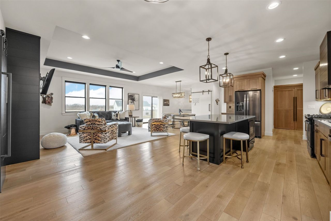 Welcome to this move-in ready, custom-built 4-bedroom, 3-bath walkout ranch located on a quiet cul-de-sac. This home boasts many fantastic amenities, starting with LVP flooring at the front door that flows directly into a great room complete with a fireplace, built-ins, volume ceilings, and a wall of windows overlooking the backyard. The gourmet kitchen is equipped with a large breakfast island, quartz countertops, a tiled backsplash, beautiful hickory cabinets, two pantries, and high-end appliances. The adjacent dining area includes sliders that lead to a maintenance-free deck with black wrought iron railings. The luxurious primary suite features a tray ceiling, an accent shiplap wall, a walk-in closet, and a private bath with custom tile work. The main level has two additional bedrooms & stylish full bath and is completed by a laundry room featuring a sink, shelving, and additional closet space. The spacious lower-level walkout includes a family room with a second fireplace and built-in cabinetry, as well as a large wet bar with island seating. This level also offers an additional bedroom (or office space), a full bath, and plenty of storage. A wonderful 3 car garage is convenient for grocery day. Exterior and additional features include a patio, front and back irrigation, and plumbing for a central vacuum system. Located with easy access to I-380, this is truly a place to call home!