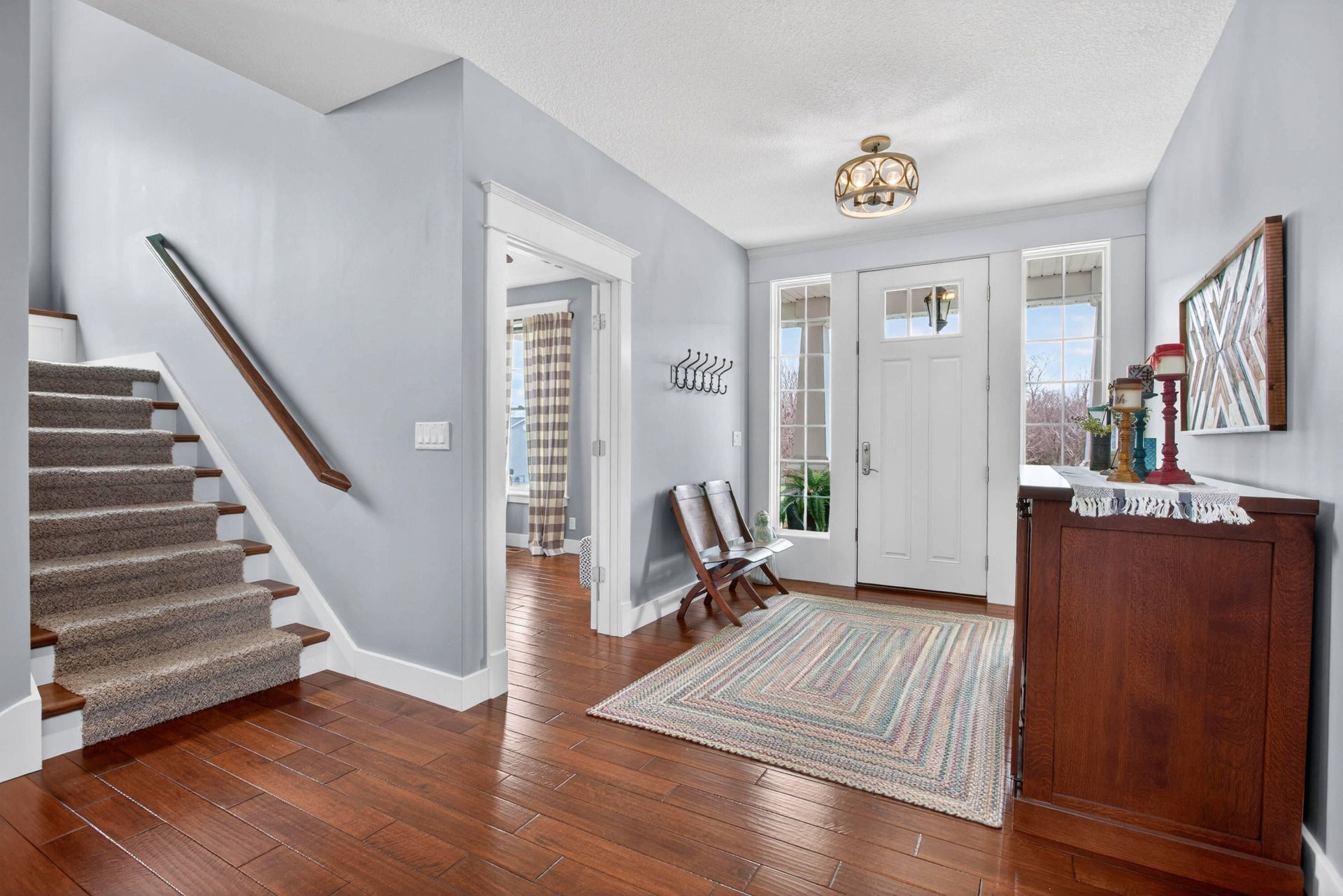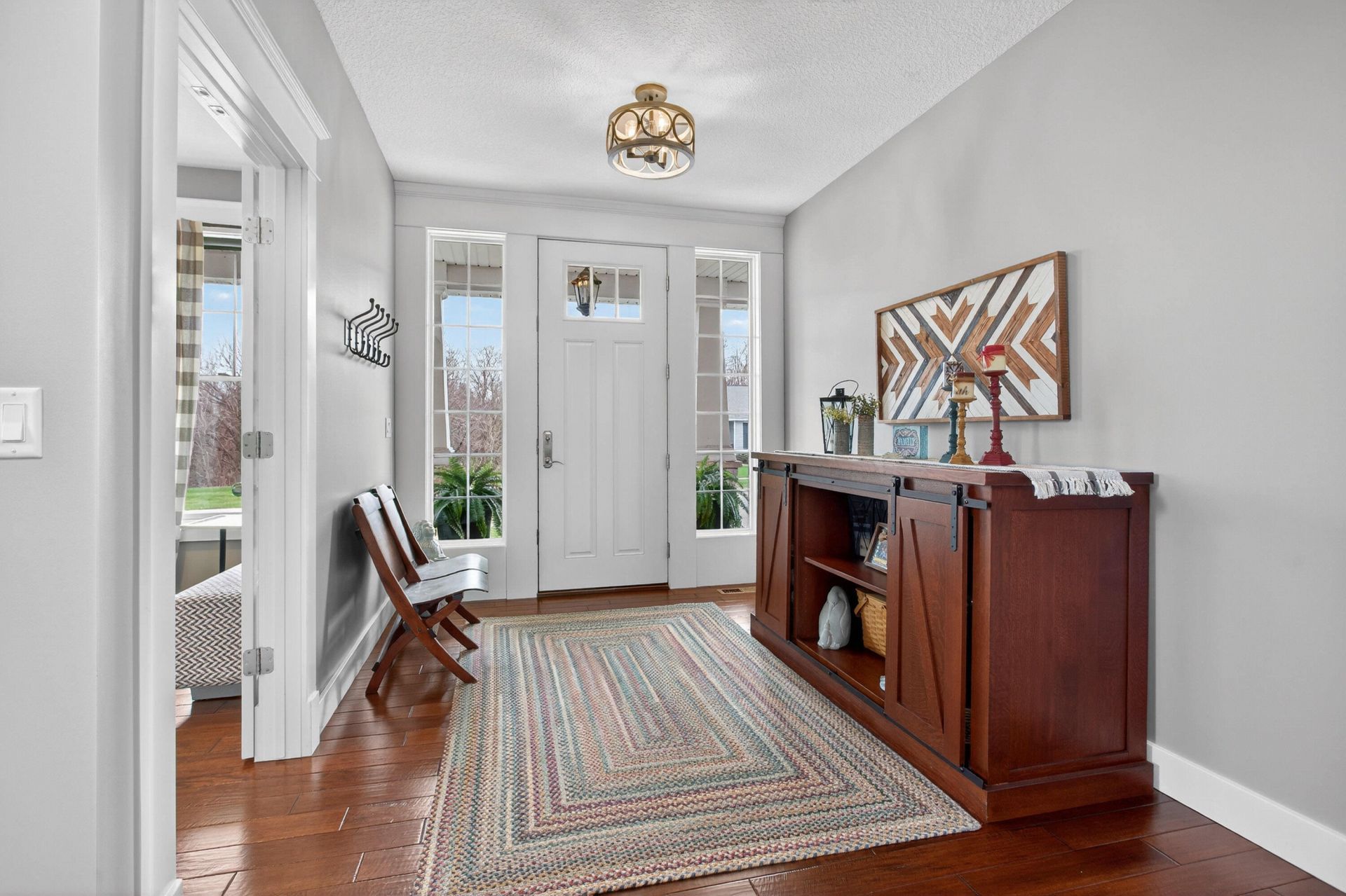 Welcome to a residence where executive scale meets the soul of a true home. This expansive home is a study in thoughtful design, offering five bedrooms and five bathrooms. To provide the ultimate privacy and convenience, three of the bedrooms serve as private retreats with their own dedicated ensuites, for family or guests. The heart of the home is defined by an elegant, intuitive flow designed for both productivity and peace. There is a dedicated office, secluded behind stately French doors. It is a space designed for the modern professional who values a silent, light-filled sanctuary for deep focus. Just steps from the office, the home opens into a warm, expansive living center. The transition is marked by beautiful columns with decorative shelving that lead you into the living room.
