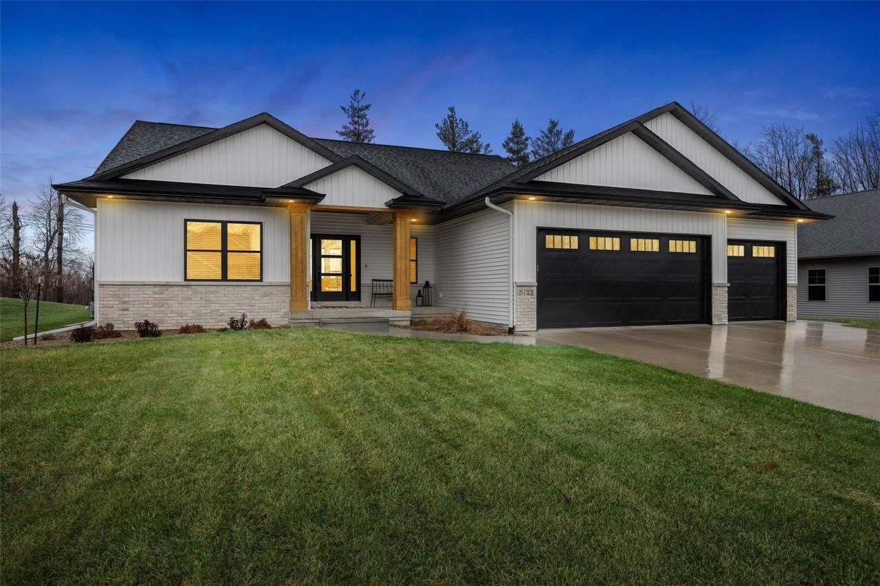 This immaculate, 2022 built custom home is situated on a private cul-de-sac. The property features an open floor plan and abundant high-end amenities. The main level is designed for modern living with a walk-in pantry, a generous open living space, and access to a covered patio perfect for outdoor entertaining. The primary suite is a true retreat, boasting vaulted ceilings and a custom tile walk-in shower with transom windows in bedroom and bathroom. A large walk in closet is conveniently connected to the laundry room via a discreet pocket door. Two additional bedrooms and a full bath complete the main floor. The finished lower level significantly expands the living space, offering a gigantic recreation room ideal for gatherings and relaxation. This level also includes a stylish wet bar, two spacious bedrooms, and a third full bath, providing ample space for family and guests.