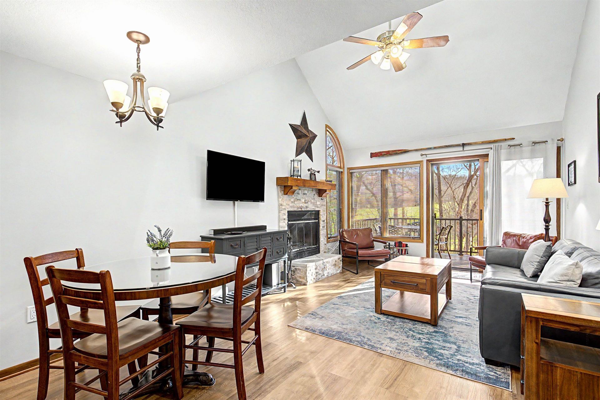 Welcome to 32 Creekwood, an inviting 2-bedroom, 2-bath golf villa nestled in the Galena Territory. This well-maintained, fully furnished unit is truly move-in ready, offering a seamless opportunity whether you're looking for a weekend retreat, investment property, or full-time residence. The bright and airy interior features vaulted ceilings, skylights, and a cozy wood-burning fireplace that creates a warm, welcoming atmosphere. The eat-in kitchen provides a functional and social space for everyday living or entertaining. Upstairs, the spacious primary bedroom offers a large closet and private bath for added comfort and privacy. A versatile loft/family room adds extra living space, perfect for a second lounge area or accommodating guests with a sleeper sofa. Step outside to relax or grill while taking in peaceful, partially wooded views overlooking the South Course. Additional highlights include upgraded six-panel interior doors, beautiful stone accents on the fireplace and kitchen bar area, and a radon mitigation system already in place for peace of mind. Don't miss your chance to own this turnkey Galena getaway! Schedule your private showing today!