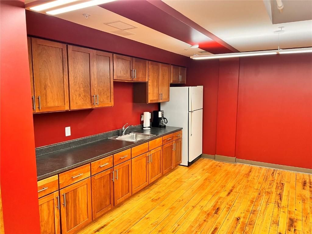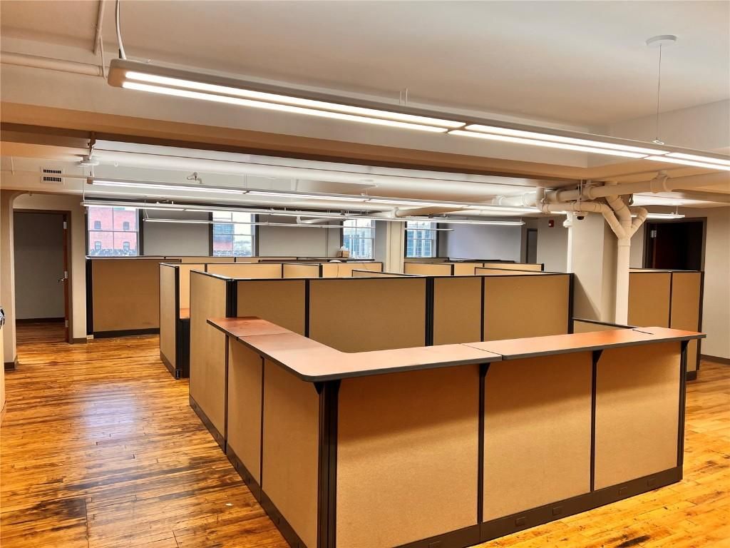 Professional Office Space at the Historic Smulekoff's Building. 4,400 rentable square feet of recently redeveloped space featuring original wood floors, exposed brick, and new LED lighting. Approximately 50% of the suite is open area suitable for multiple team members or collaboration space. Additionally, the space consists of a reception area, five offices, dedicated advanced server room, conference room, in suite storage, phone booths, and break room/kitchenette.