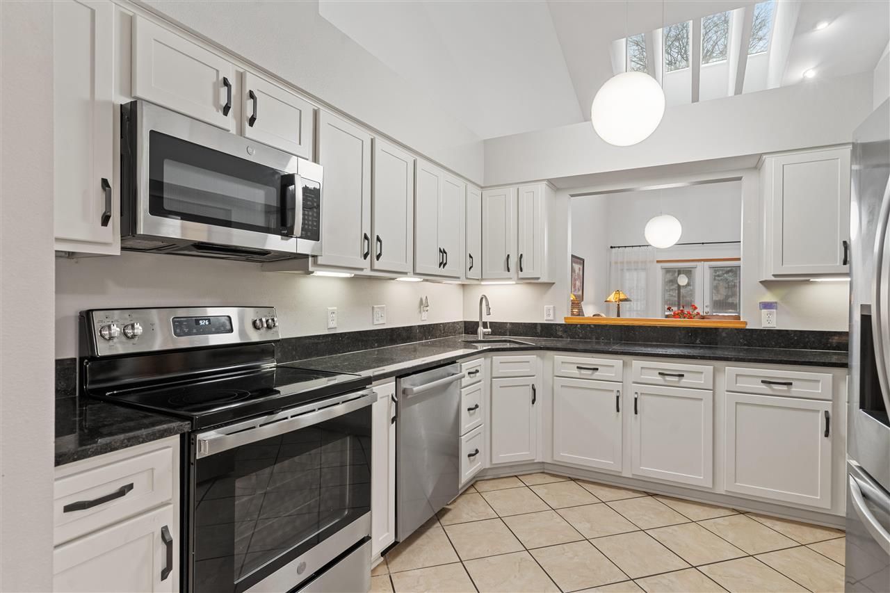 Beautiful updated, move-in-ready condo featuring zero-step entry in a fantastic location. From the moment you step inside, you'll appreciate the generous space and meticulous care throughout this quality-built home. The main living area impresses with soaring vaulted ceilings, skylights, and an expansive wall of windows that flood the space with natural light. Relax and unwind while enjoying nature from the large private screened porch or step outside to the adjoining patio?perfect for morning coffee or evening gatherings. The home boasts an impressive list of newer updates, including luxury vinyl plank flooring throughout the main level, stainless steel appliances, granite countertops, updated cabinetry hardware, and fresh interior paint. The screened porch has also been refreshed with new paint and screening. The primary bathroom is a true showstopper, featuring a stunning tiled walk-in shower with sleek frameless glass doors, along with new toilets and modern plumbing fixtures in both bathrooms. Additional updates include new light fixtures in the foyer and laundry/mudroom. A cozy fireplace anchors the living room, while the classic kitchen shines with white cabinetry and under-cabinet lighting. The main level offers easy one-level living, plus a bonus room in the loft upstairs that could be used as a 3rd bedroom.