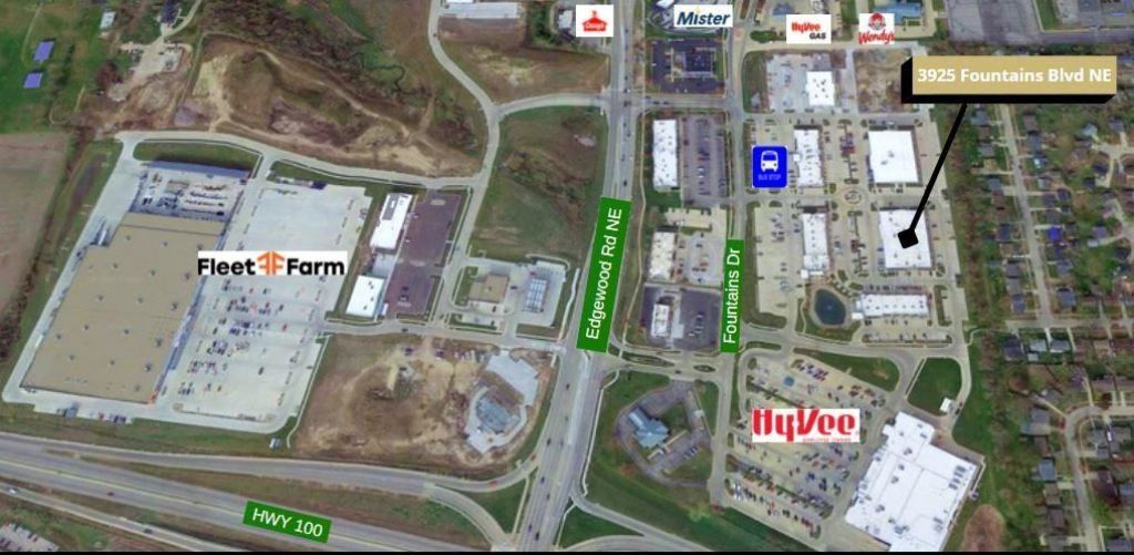 Class A office fully built out office space at The Fountains with easy access to Collins Road/Hwy 100 and I-380. Multiple amenities available within this center including sit-down restaurants, fitness centers, spas, salon, retail, and active regional grocery store. Space Highlights: 8 offices, 1 conference room, storage area, common area restrooms, monument signage access. Suite 100 and 102 can be combined for total square footage of 5,667. Suite 102 is shell space ready for build out. Base rate is subject to annual increases.