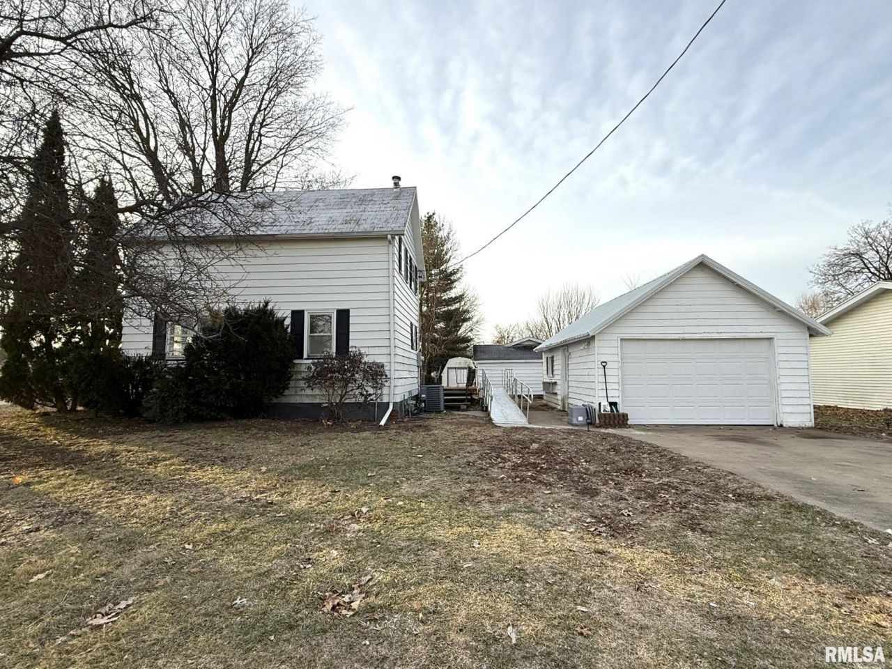 Check this one out! Multiple outdoor spaces for all your storage needs, situated on a sprawling half acre lot in Woodhull, complete with a sizable 2-3 bed, 1 bath home. Featuring a heated 1.5 car garage with room to tinker, an additional oversized 1 car garage, and two sizable sheds, you will find ample space for all your tools, toys, and treasures! The 1.5 story house offers convenient main floor living within the spacious living room, adjacent versatile dining area or flex space (with potential to be converted into a bedroom), freshly painted eat-in kitchen with abundant cabinetry, laundry room with washer/dryer, and full bathroom. Upstairs, find two sizable bedrooms on either side of the bonus space that could be used as a nonconforming third bedroom, hobby area, or gaming space. This property is bursting with potential to be your small town dream! Call today!
