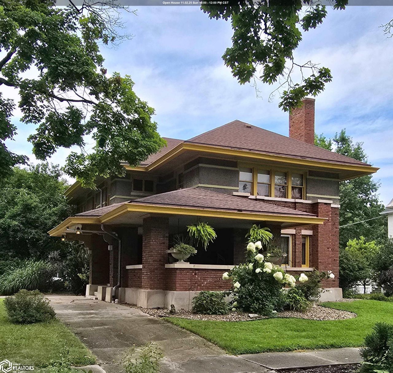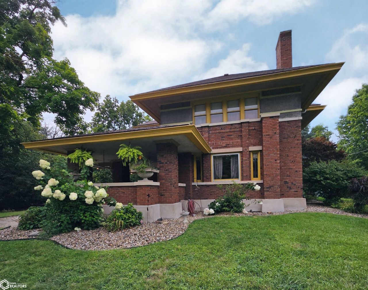 Discover an architectural masterpiece in Warsaw, Illinois. This magnificent Frank Lloyd Wright Prairie Style home, meticulously designed by architect Ernest M. Wood, seamlessly blends historical significance with modern comfort. Every detail of this very large residence has been preserved, with beautifully crafted woodwork, original doors, and rich wood flooring in impeccable condition throughout. The home is bathed in the warm glow of stunning leaded light fixtures and intricate stained and leaded windows, creating a unique and inviting atmosphere. Spanning 4 bedrooms and 3.5 bathrooms, the layout is designed for both grand entertaining and comfortable family living. The main level features a spacious living room, a formal dining room, and an updated kitchen that honors the home's heritage while providing modern amenities. An office offers a quiet retreat, while a unique bonus room, originally built as a traditional smoking room, provides a charming space for relaxation. The semi-finished basement offers even more functional space, including a laundry room, a rec room, a workshop/utility room. Outside, the home's incredible curb appeal is undeniable. A two-car detached garage provides convenience, while the expansive covered front porch invites you to unwind and enjoy the serene view of Ralston Park, framed by mature hydrangeas. This is a rare opportunity to own a piece of architectural history, offering a timeless blend of artistry, craftsmanship, and elegant living.