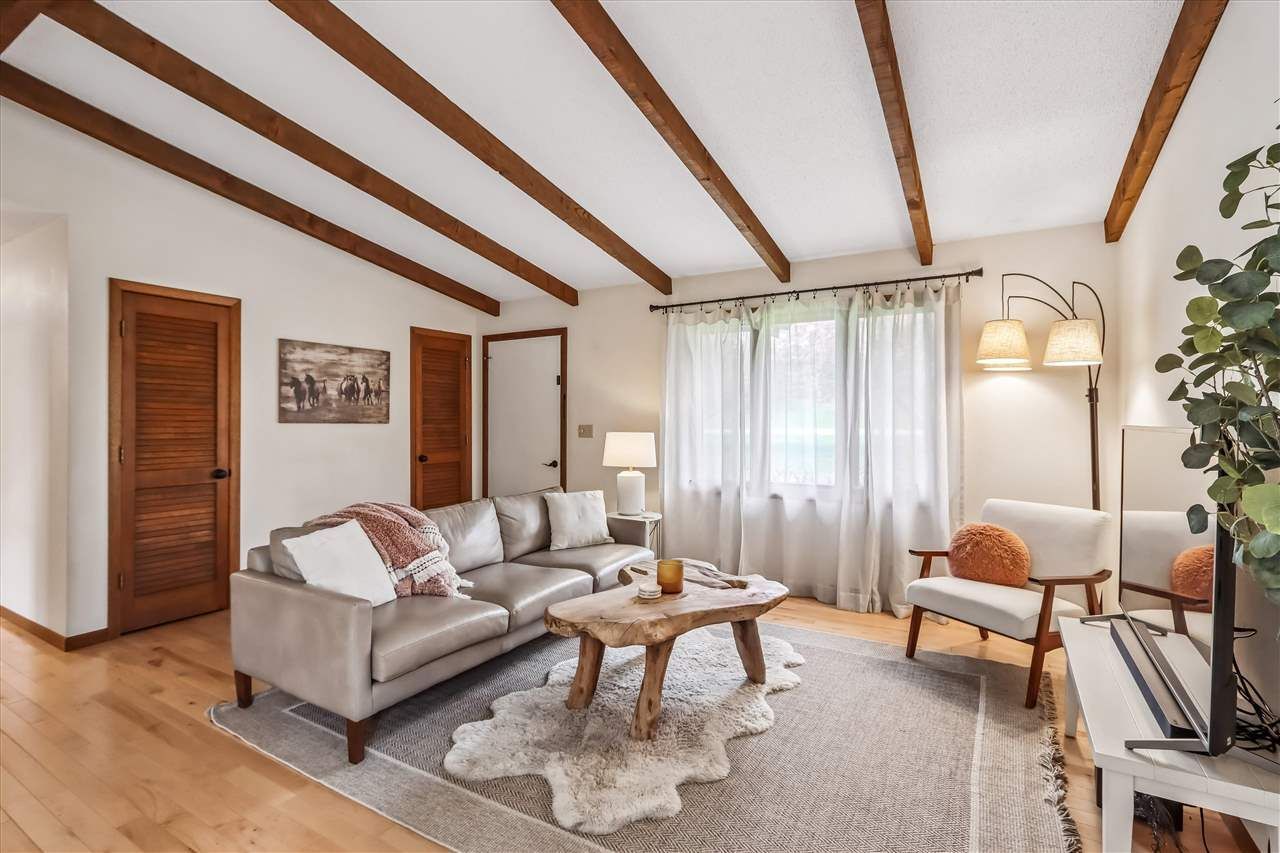 Nestled amongst a lush, wooded backdrop, this mid-century gem offers a peaceful retreat from the everyday. Step inside to a serene atmosphere highlighted by tasteful updates and timeless character. The living room features cathedral wood beamed ceilings and is open to the dining area, updated with natural hardwood flooring that flows throughout the entire upstairs. The remodeled eat-in kitchen includes Corian countertops, stainless steel appliances, and a deep sink. Enjoy the ease of one level living with a main floor laundry room and primary suite that opens to a private balcony, perfect for morning coffee. Take in breathtaking views from the back deck; garden, gather, and play in the expansive backyard complete with a firepit area. The new garage doors open to reveal an impressive four car garage with a workshop area and abundant storage. The front circle drive, long driveway and extra parking pad offer additional guest parking. This well-built and lovingly maintained home is situated on a private cul-de-sac and offers the best of country living with quick access to Iowa City, Solon, Coralville, and North Liberty.