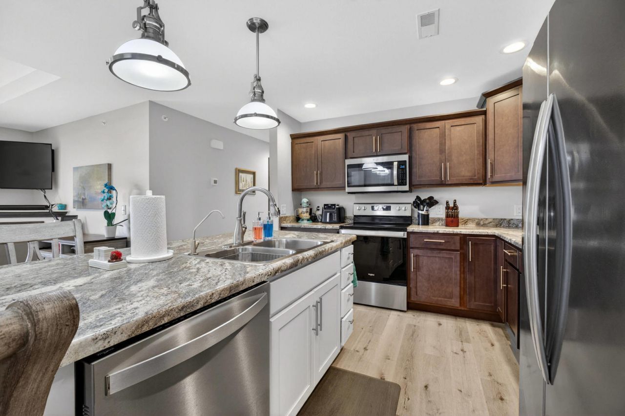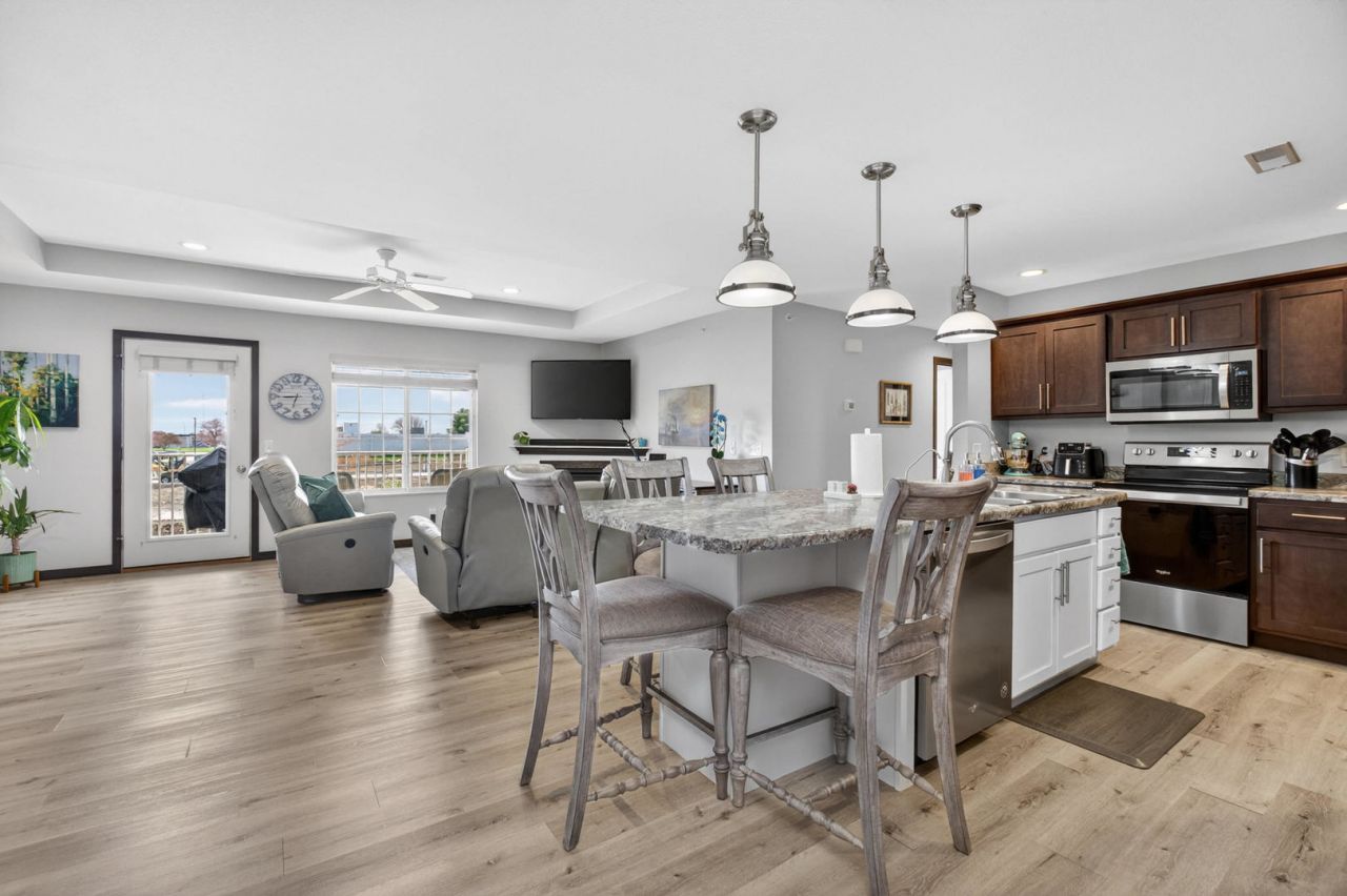 Fully updated condo in Eldridge! This beautifully updated 2-bedroom, 2-bathroom second-floor condo delivers the perfect blend of modern style and everyday comfort. The fully updated kitchen features an extra large island, stainless steel appliances, and clean, updated finishes - everything you need, done right. The open layout flows naturally from the kitchen into the living space, filling the home with a bright, airy feel. Primary bedroom includes a bath en suite and a large walk in closet. Located in Eldridge - one of the Quad Cities' most sought-after communities - you'll enjoy small-town charm with convenient access to shopping, dining, and major commuter routes. Don't miss your chance to own this turnkey gem. Schedule your private showing today!