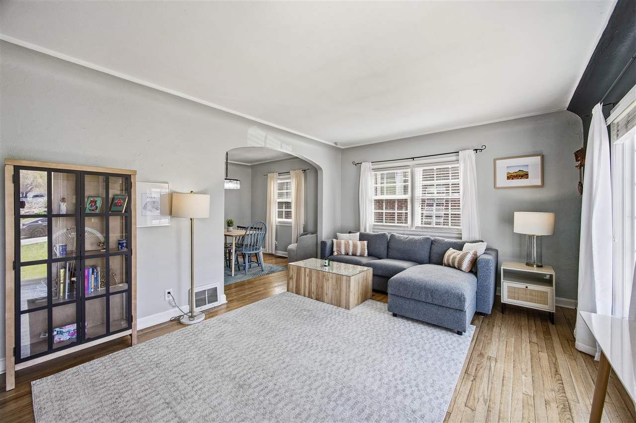 Welcome home to this charming 1.5-story property on the NE side of Cedar Rapids, built in 1941 and full of character and opportunity. Step inside to an inviting living room filled with natural light and beautiful hardwood floors that carry throughout the main level. You'll find two bedrooms and a full bathroom on the main floor, offering convenient single-level living. The kitchen features ample counter and cabinet space with room to expand or customize to your needs. Head upstairs to the unfinished half story, already studded and ready to be transformed into an additional bedroom, office, or flex space. The lower level provides laundry and abundant storage. Out back, enjoy a spacious yard perfect for relaxing evenings, entertaining, or pets at play. A one-stall garage with direct access to the kitchen plus additional street parking adds everyday convenience. Located near schools, Mount Mercy University, parks, and with quick access to Collins Road for shopping, dining, and recreation, this home blends location, charm, and potential.