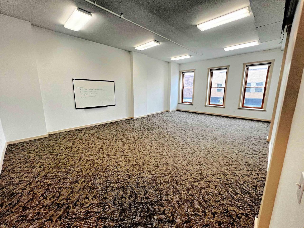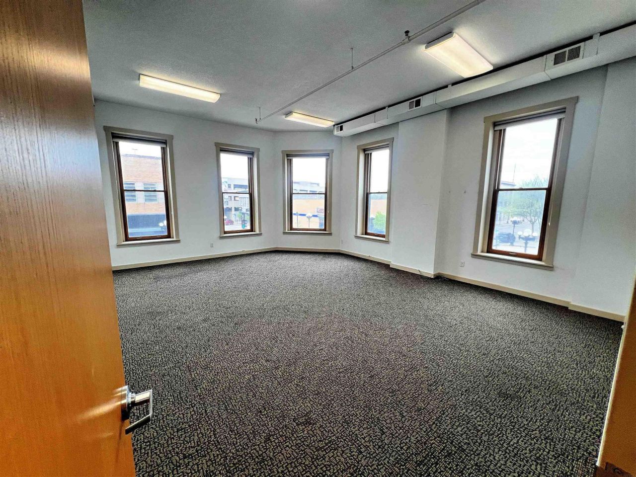 Second story office space featuring beautiful views of Downtown Waterloo, located at corner of E. Fourth and Lafayette Streets, with access from rear Main Street Waterloo parking lot and elevator access. Several private offices (6-7) with large board room