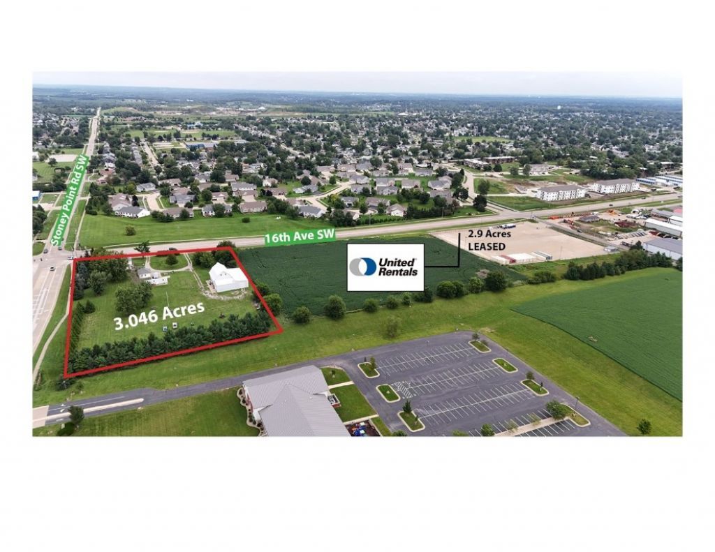 3.046 acre commercial/ light industrial zoned lot for sale, with an opportunity to purchase an additional 7.97 acres adjacent to the east for a total of 11.016 acres. Located at the intersection of Stoney Point Rd and 16th Avenue SW in Cedar Rapids, this commercial lot offers high visibility and high traffic counts of 15,370 vehicles per day. The adjacent lot is also available for sale. Showings of house only as part of contingency period.