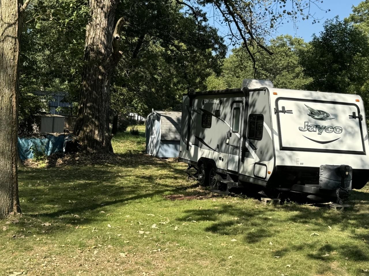 Nice level lot located in a cul de sac. Plenty of storage space in the 8x8 shed and firewood for your fire pit. Call today for a showing! TRAILER TO BE REMOVED BEFORE CLOSING, LOT ONLY FOR SALE. Please note that Woodhaven Lakes is a gated recreational community and cannot be used as a primary residence or homestead. You must be accompanied by a broker to view any properties, YOU CANNOT ACCESS THE CAMPGROUND WITHOUT A PASS. Property owner pays the association fees.